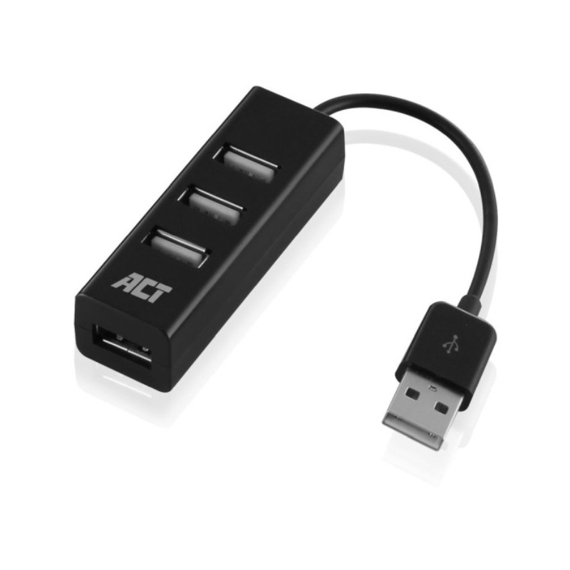 ACT USB Hub 2.0, 4x USB-A, mini noir